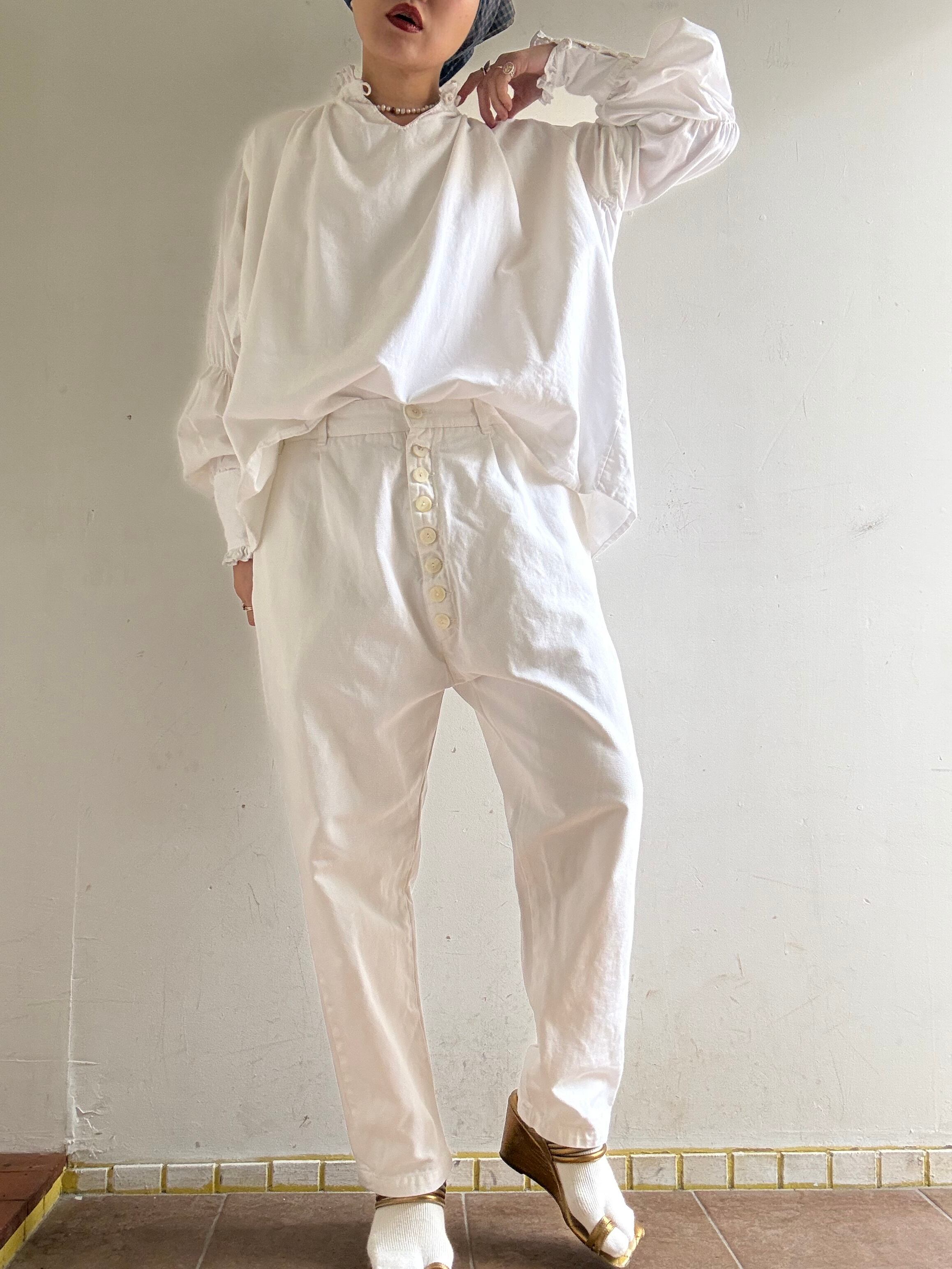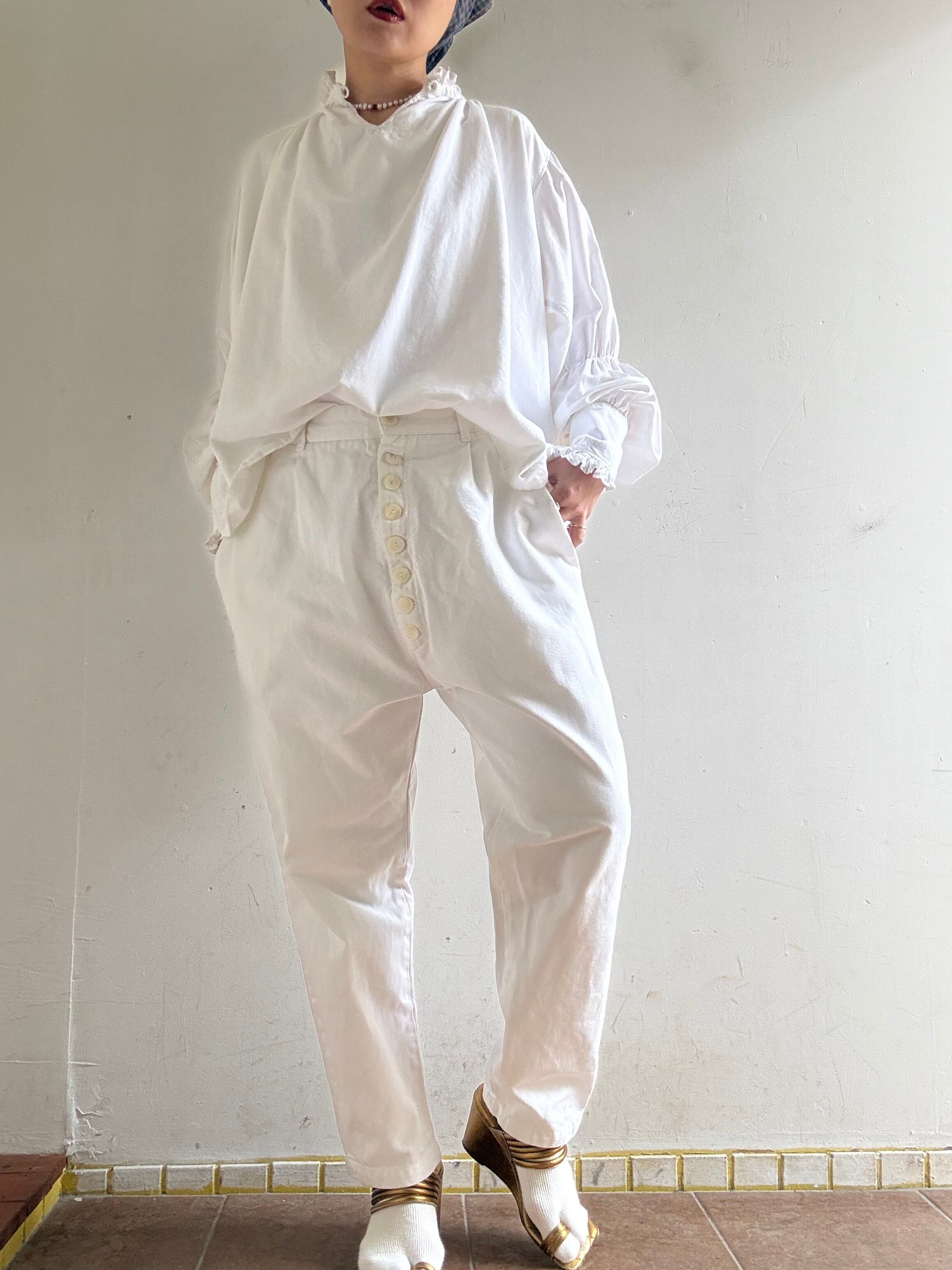 着丈:91cm ウエスト:37cm ヒップ:57cm 股上:36cm 股下:60cm material:cotton (model 身長154cm) 商品の詳細につきましては、4/10(Fri)のインスタグラムライブをご覧ください。 またこちらの商品はOnline Storeでは4/11(Sat)12時よりお買い求めいただけます。