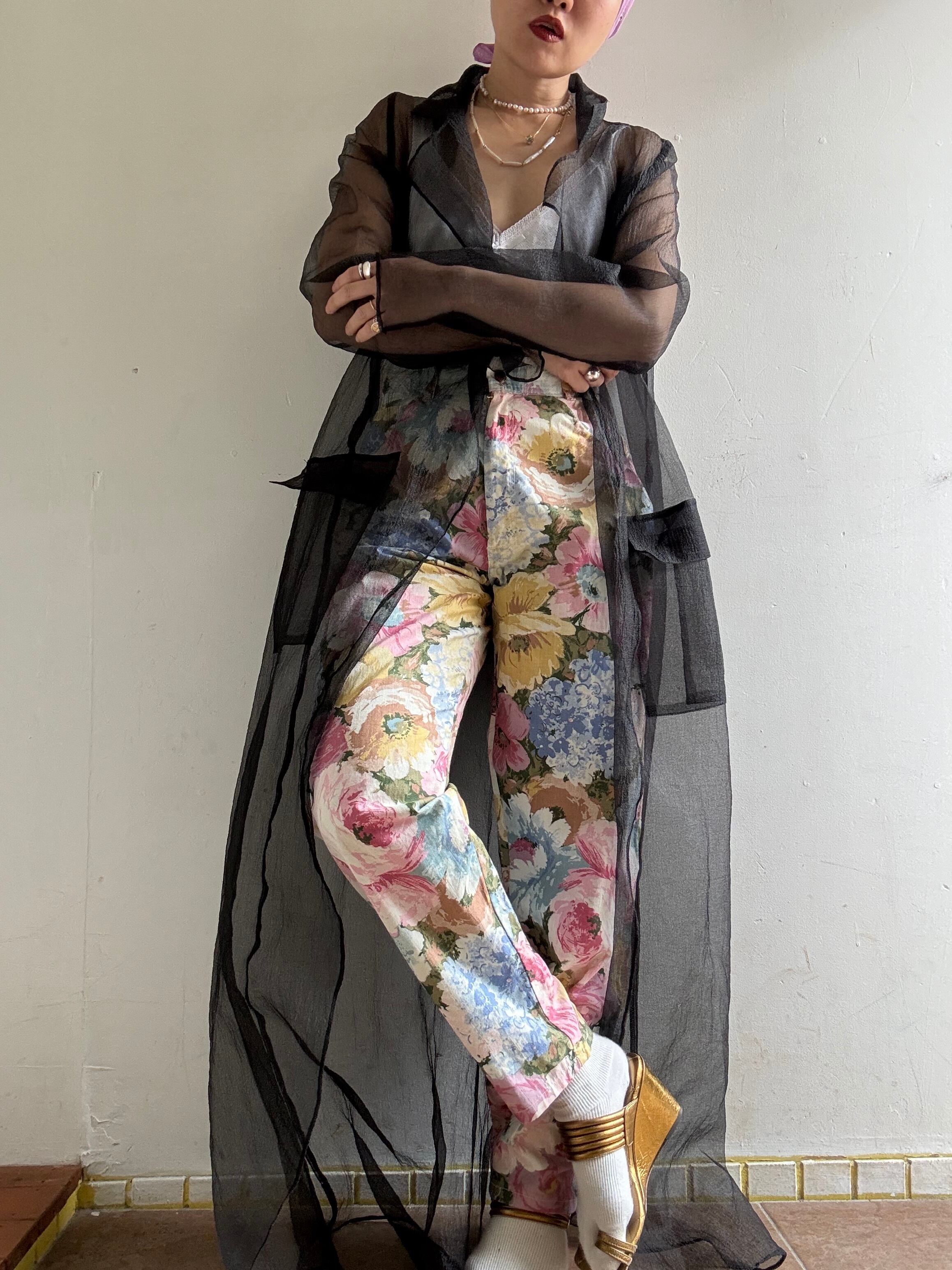 着丈:97cm ウエスト:35.5cm ヒップ:56cm 股上:30cm 股下:70cm material:cotton (model 身長154cm) 商品の詳細につきましては、4/14(Tue)のインスタグラムライブをご覧ください。 またこちらの商品はOnline Storeでは4/15(Wed)12時よりお買い求めいただけます。