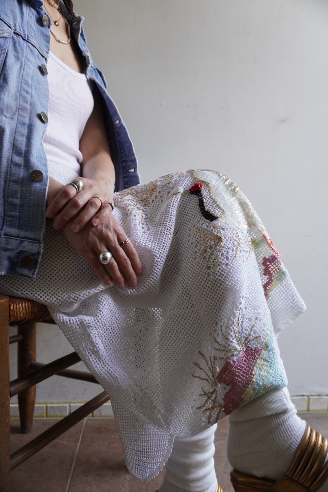 着丈:79cm ウエスト:30-53cm ヒップ:54cm material:cotton/beads/spangle (model 身長154cm) 商品の詳細につきましては、4/16(Thu)のインスタグラムライブをご覧ください。 またこちらの商品はOnline Storeでは4/16(Thu)21時よりお買い求めいただけます。