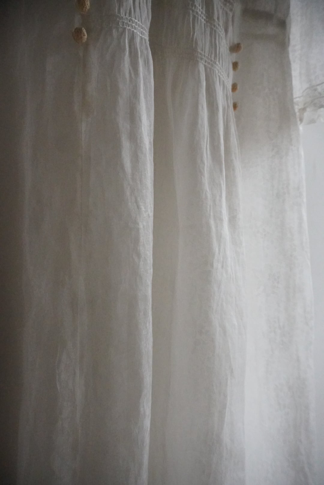着丈:133cm 肩幅:37cm 身幅:58cm ウエスト:42cm 袖丈:44cm material:organdy cotton (model 身長154cm) 商品の詳細につきましては、4/28(Tue)のインスタグラムライブをご覧ください。 またこちらの商品はOnline Storeでは4/29(Wed)21時よりお買い求めいただけます。